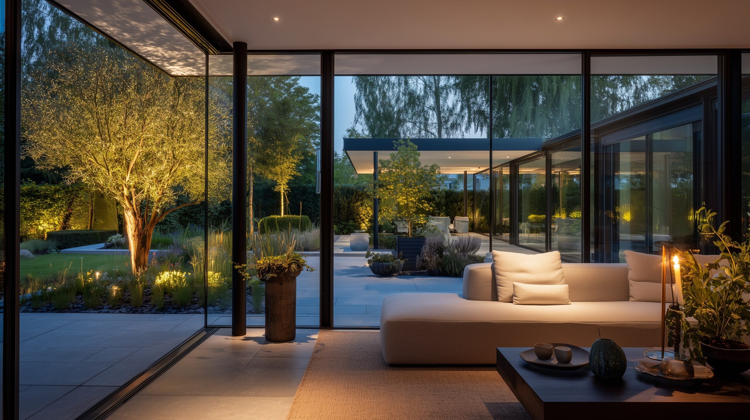 Dein Garten in perfektem Licht. Automatische Beleuchtung für Fassade und Wege schafft Atmosphäre und Sicherheit. Genieße magische Abende im Freien.